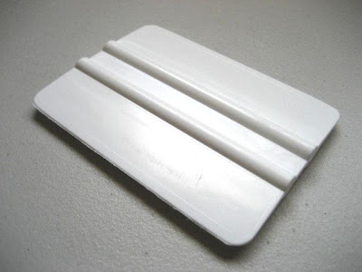 Next, I peeled the back of the decal off just a little along the top to expose the sticky surface and cut the back off with some scissors. This allowed me to line up the decal and stick the top down. Then using the vinyl squeegee from top to bottom while removing the rest of the paper backing I pressed the decal into place.