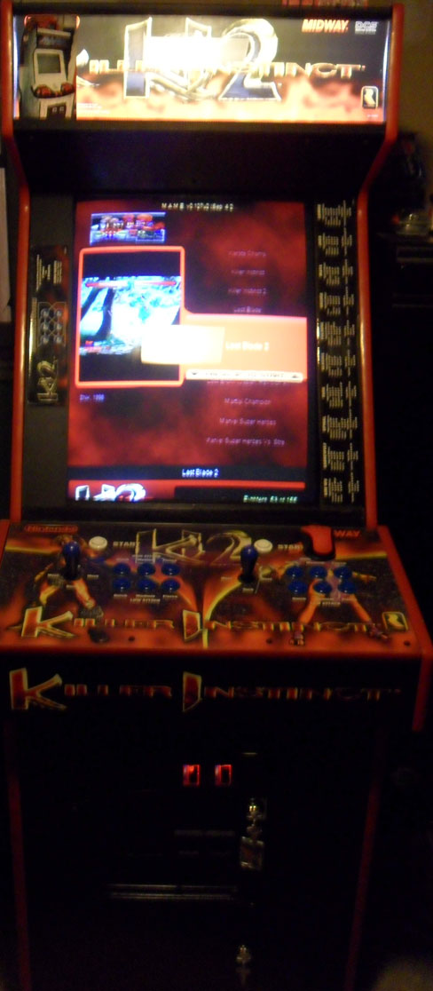 As for KI1 vs KI2, I like them both, but KI1 has much better music :) I still hold onto hope that RARE releases KI3. I took the pix with KI2 cause its a KI2 cab lol.  The screen when playing a horizontal game is still the equivalent of about a 24" screen so I dont lose must real estate that way.  Im tryingt o figure out art files so I can fill int he black sections with instruction cards and or art or something
