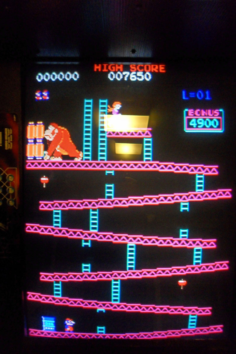 these are just more gratuitous pix. There are some issues, like I don't have a front end set up yet AND the bottom of the screen is too low, about an inch is out of site, which for most games is no problem, but for Donkey Kong and Galaga where you're at the bottom, its under the wooden cross beam that holds the glass.