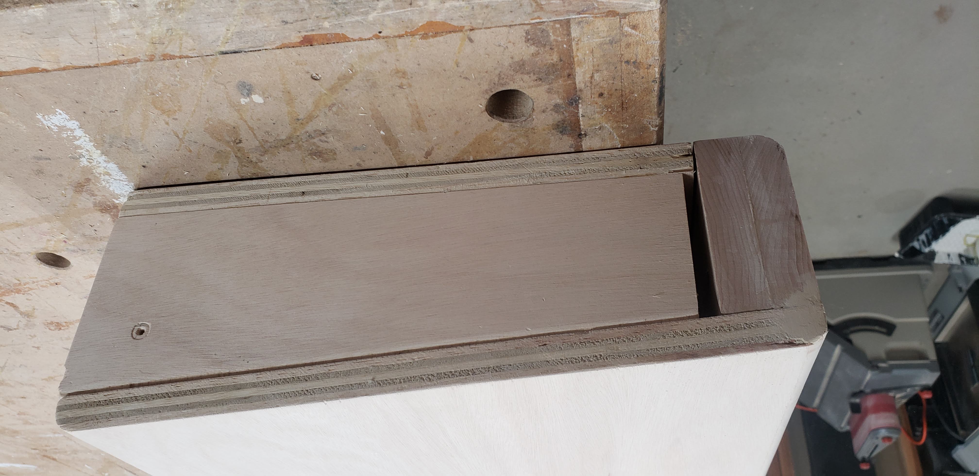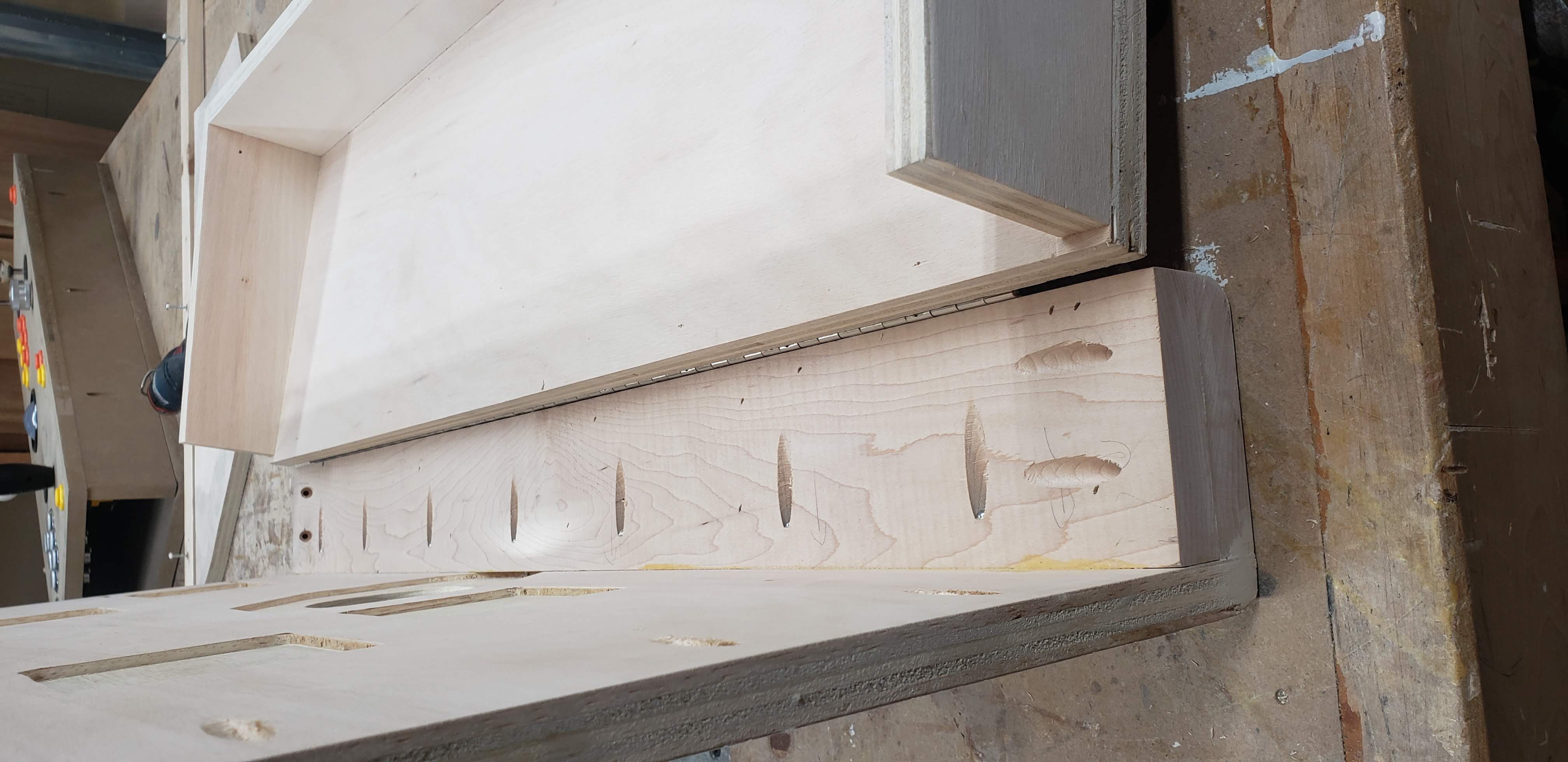 - attached the side wings from the inside using pocket screws on the CP top and the front support hardwood piece.