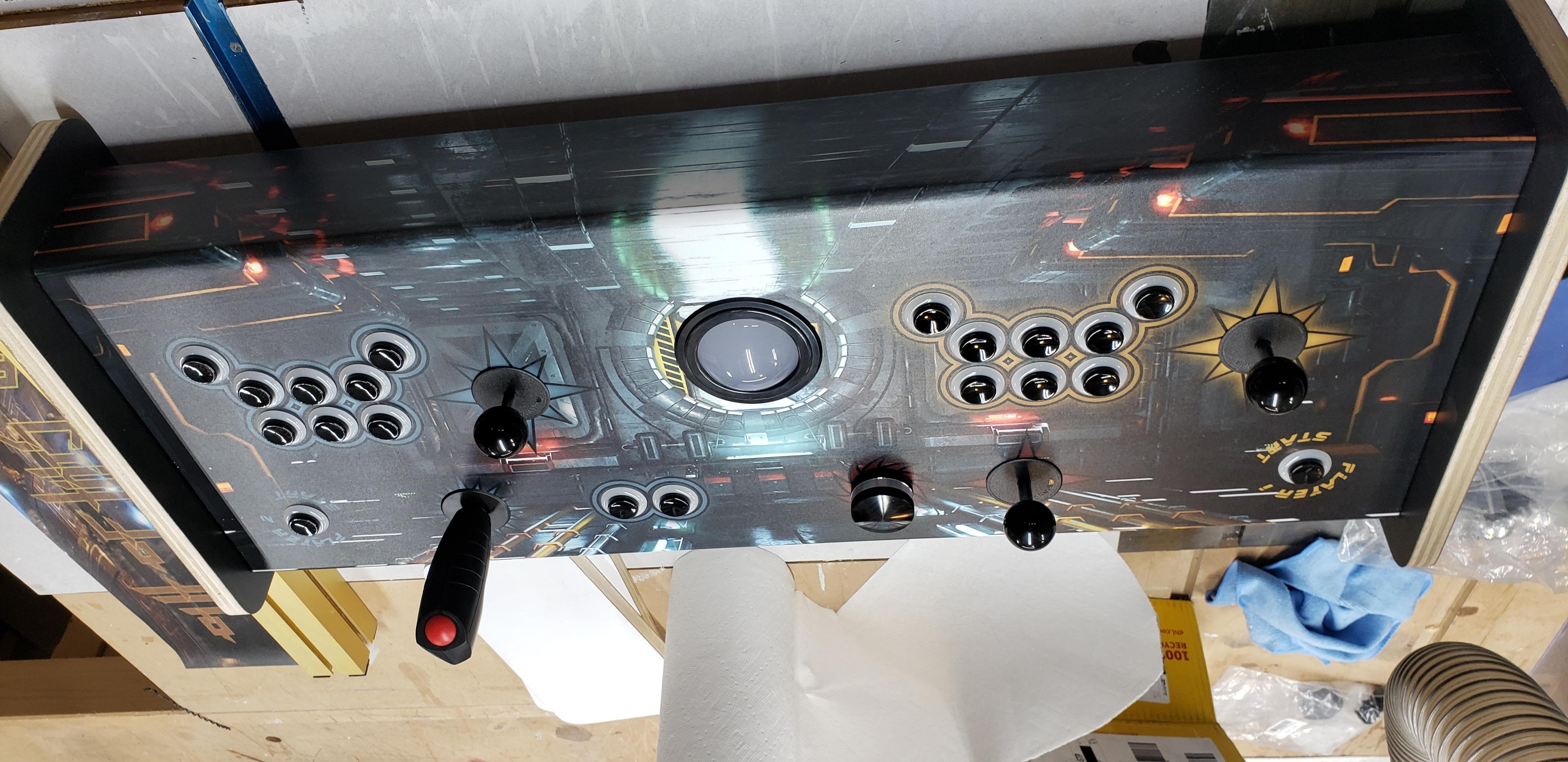 Also, I moved the glass/bezel further inward to create a recessed 1 3/4" tray behind the CP for the admin buttons and to stash a pile of tokens, phone, game controller, etc. Got that piece from the 'Lakeside Arcade' thread. Very handy little feature.