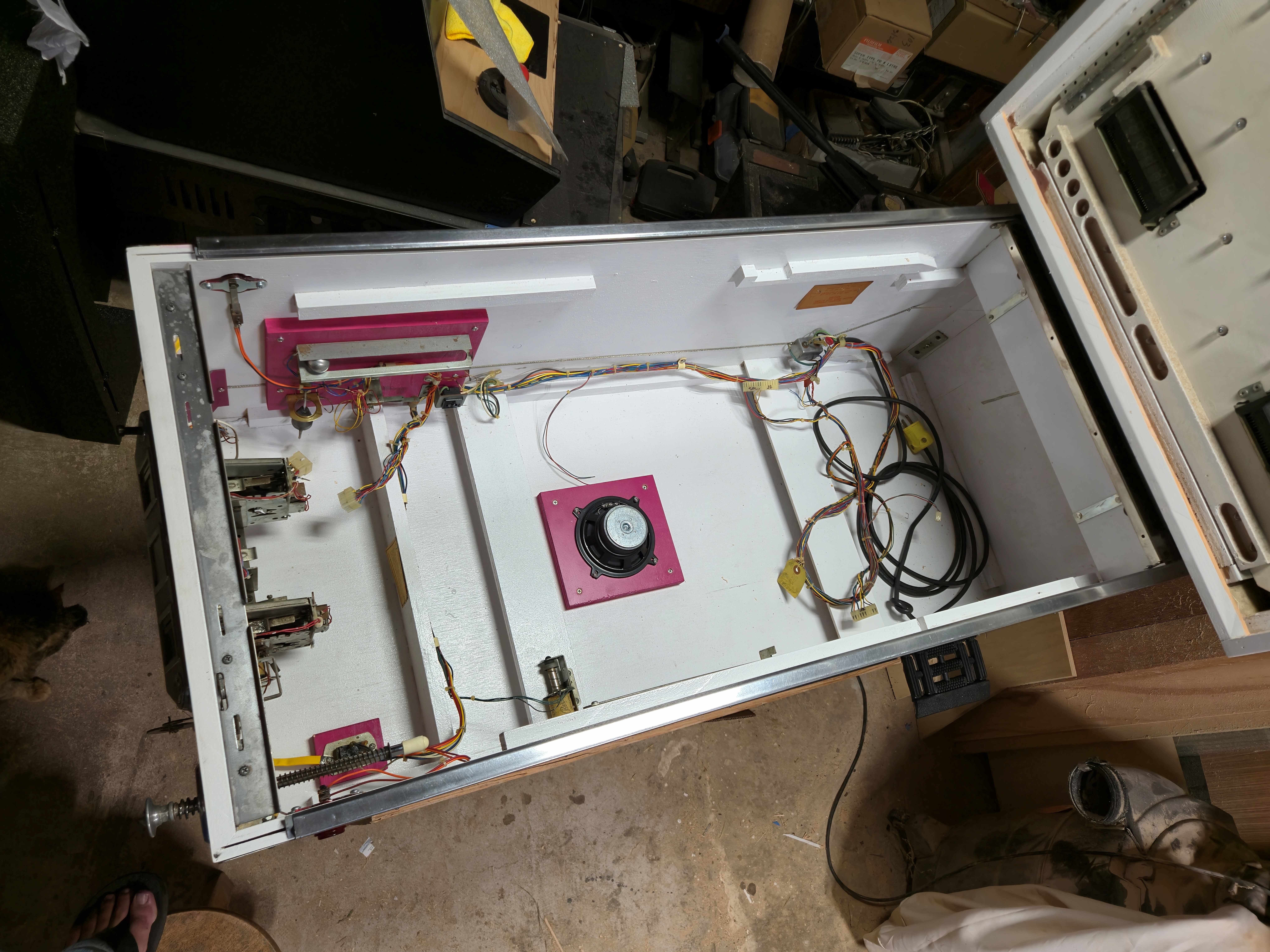 John and Chad helped me get the new coffin upstairs so it cleared the space needed down in the shop to get going on the playfield swap for real.