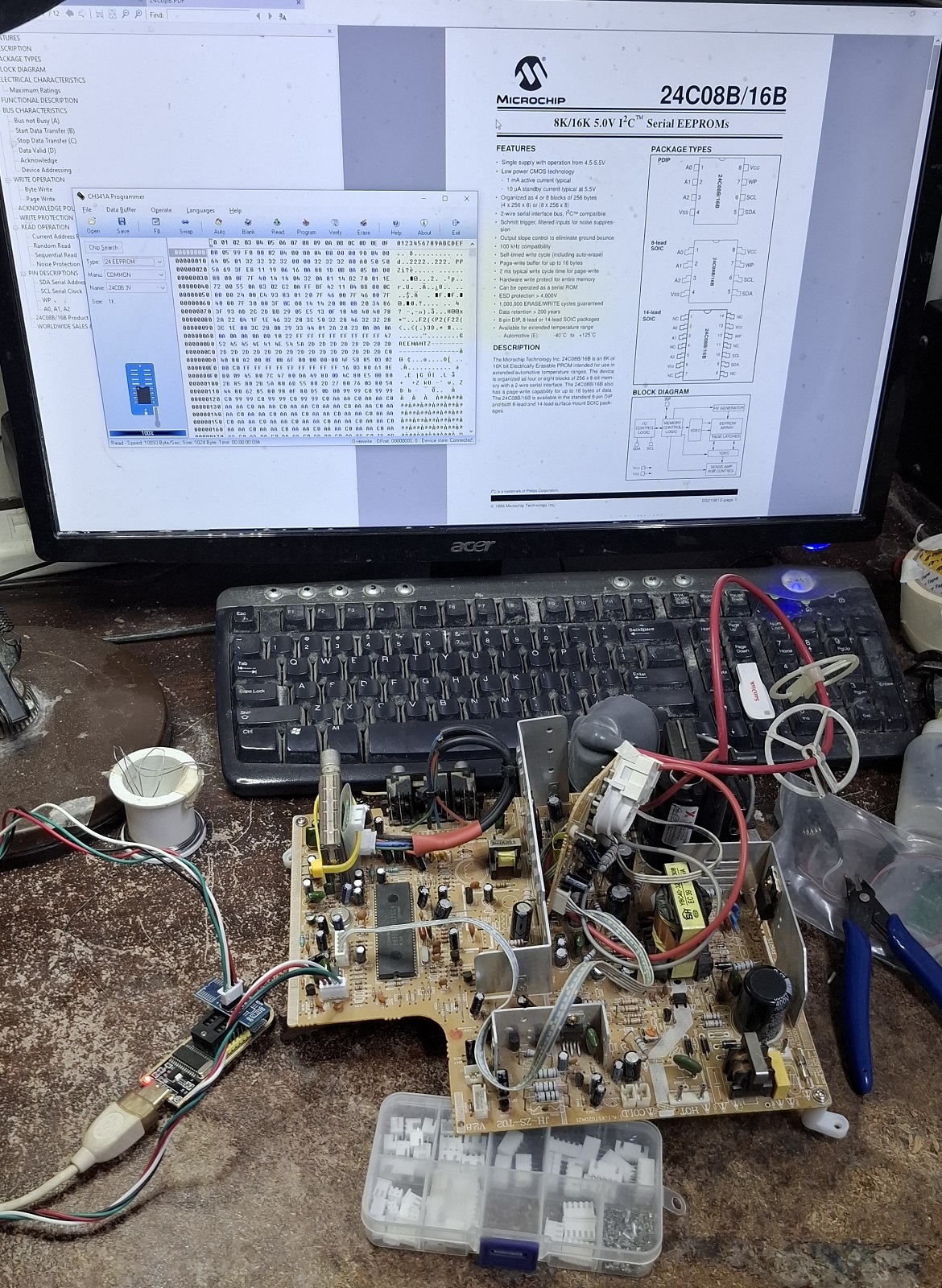Unfortunately the China TVs use larger DIP-8 chips, the clip cannot be used with them, so the EEPROM must be desoldered from the PCB so that you can slot the legs directly into the programmer. Very inconvenient. I worry about damaging the traces, and after doing this a few times I am now over it.