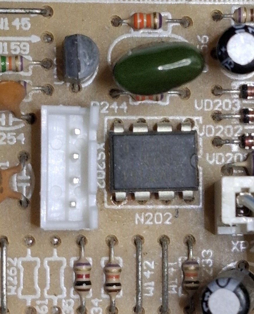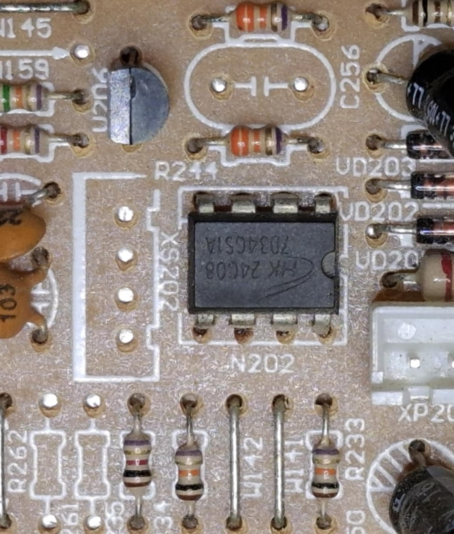 Time to talk about hacking the TV's EEPROMs. Here it is, "24C08":