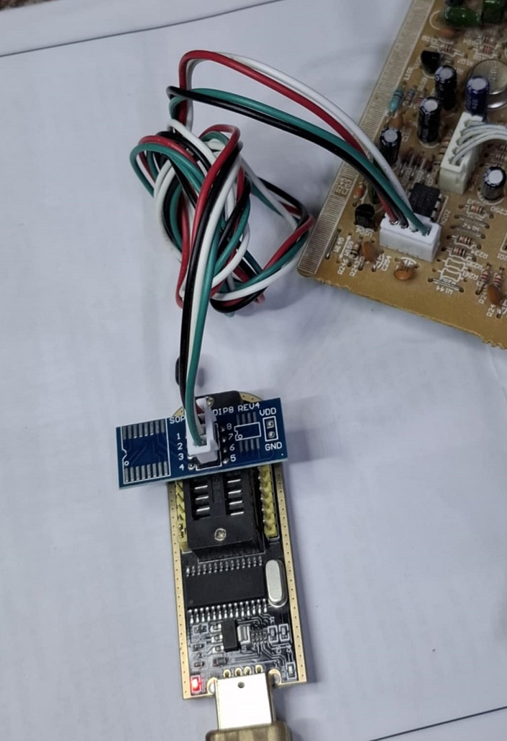 Unfortunately the China TVs use larger DIP-8 chips, the clip cannot be used with them, so the EEPROM must be desoldered from the PCB so that you can slot the legs directly into the programmer. Very inconvenient. I worry about damaging the traces, and after doing this a few times I am now over it.