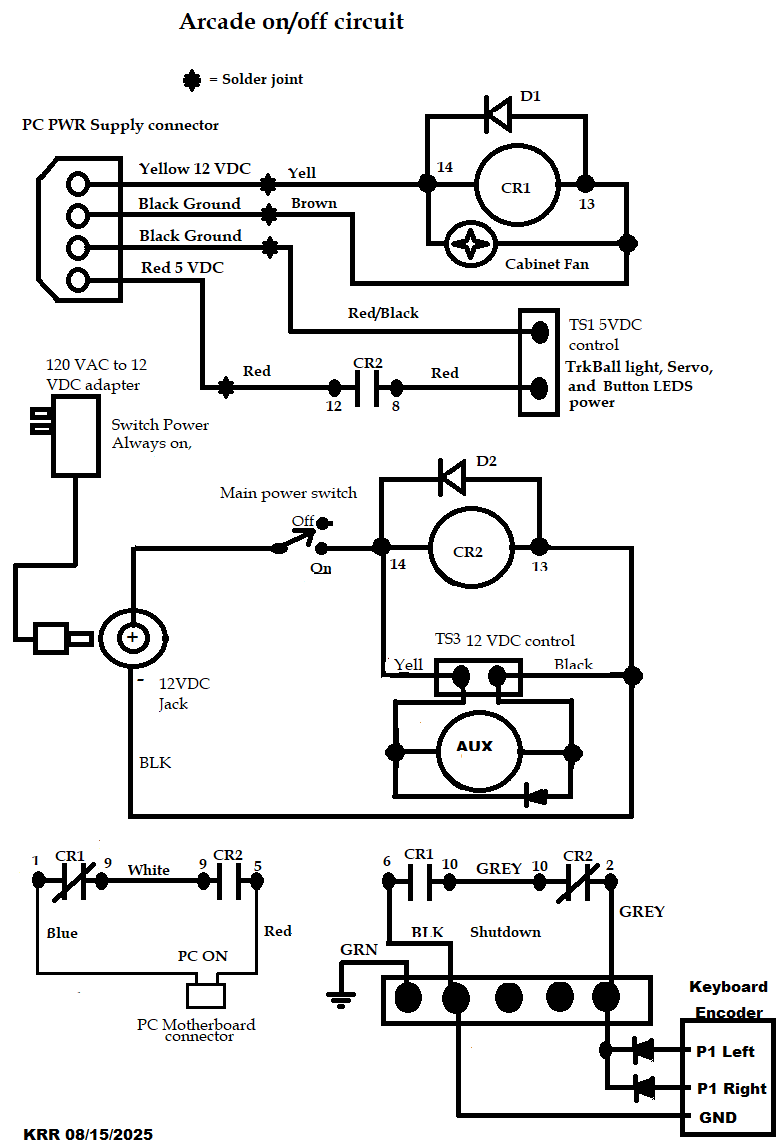 This also turns on teh AUX relay, which switches high voltage to monitor, marquee lamp, etc.